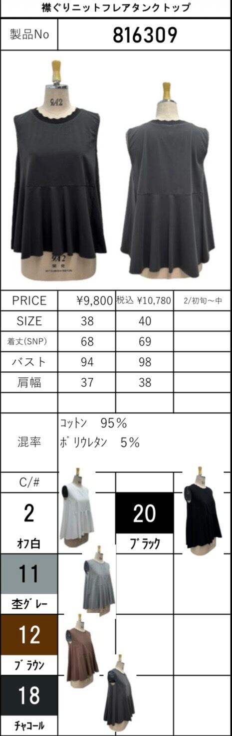 襟ぐりに細くニットを使用した、お腹カバーに最適のフレアタンクトップになります